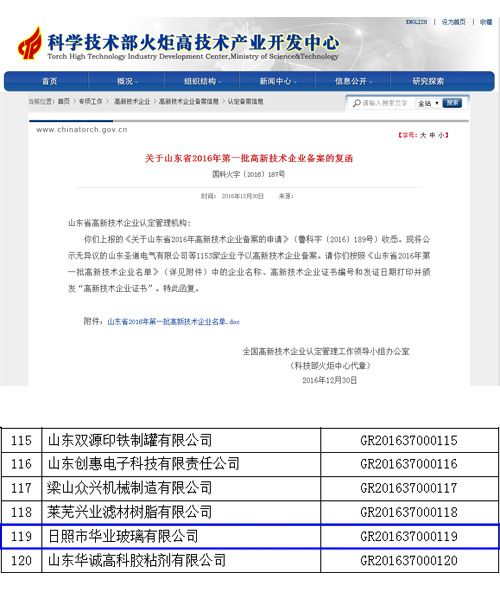 根據(jù)全國(guó)高新技術(shù)企業(yè)認(rèn)定管理工作領(lǐng)導(dǎo)小組辦公室《關(guān)于山東省2016年第一批高新技術(shù)企業(yè)備案的復(fù)函》,我公司被認(rèn)定為“國(guó)家級(jí)高新技術(shù)企業(yè)”。