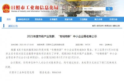 根據(jù)《關于組織推薦2021年度市級“專精特新”中小企業(yè)等的通知》要求,市工信局于5月14日組織五名專家對各區(qū)縣推薦申報的項目進行了評審。我公司申報的日照市“瞪羚”企業(yè)通過評審。